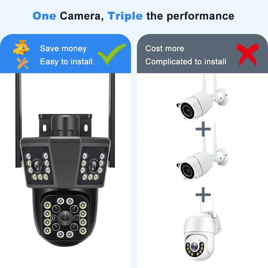 Outdoor Camera-8X Zoom-6K-12MP WiFi-Motion Tracking- PTZ- Three Screens-360