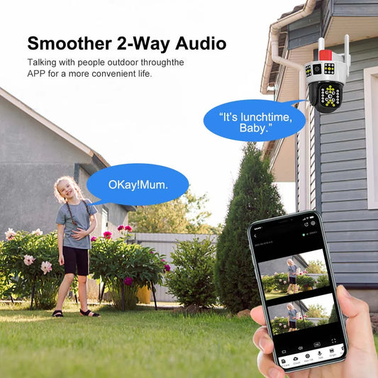 12MP 6K Outdoor WiFi Camera Three Screens 5X Zoom Motion Tracking-360°