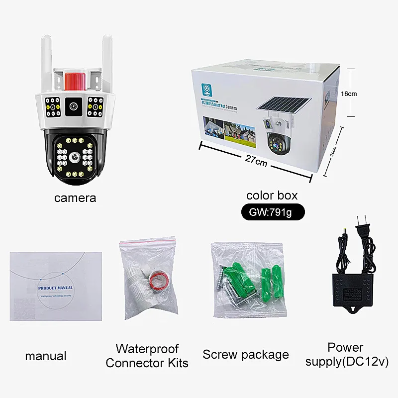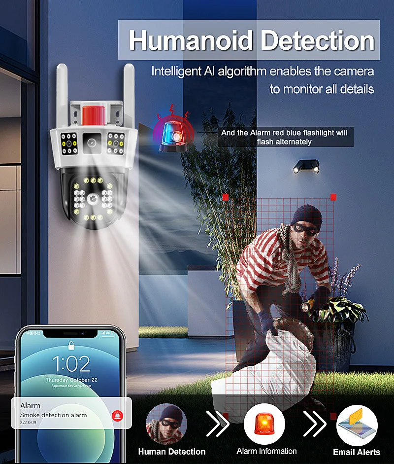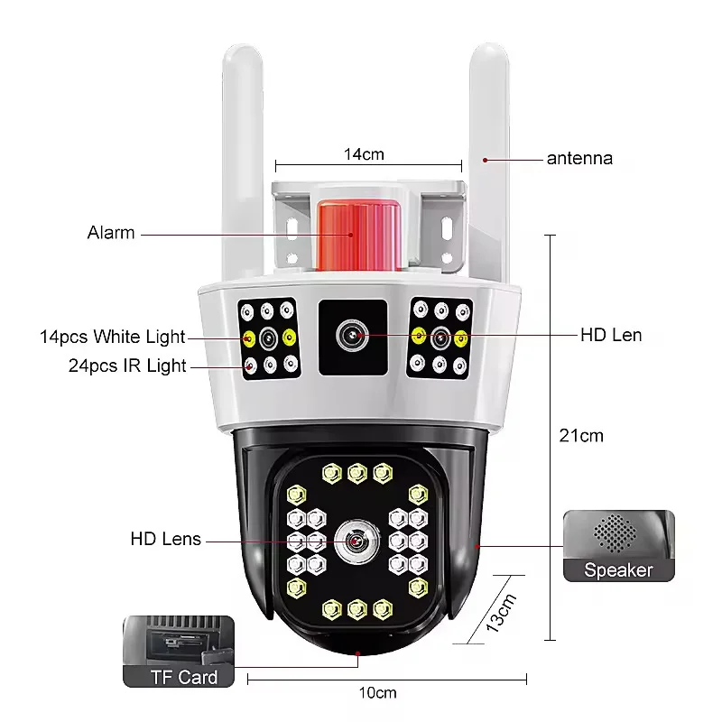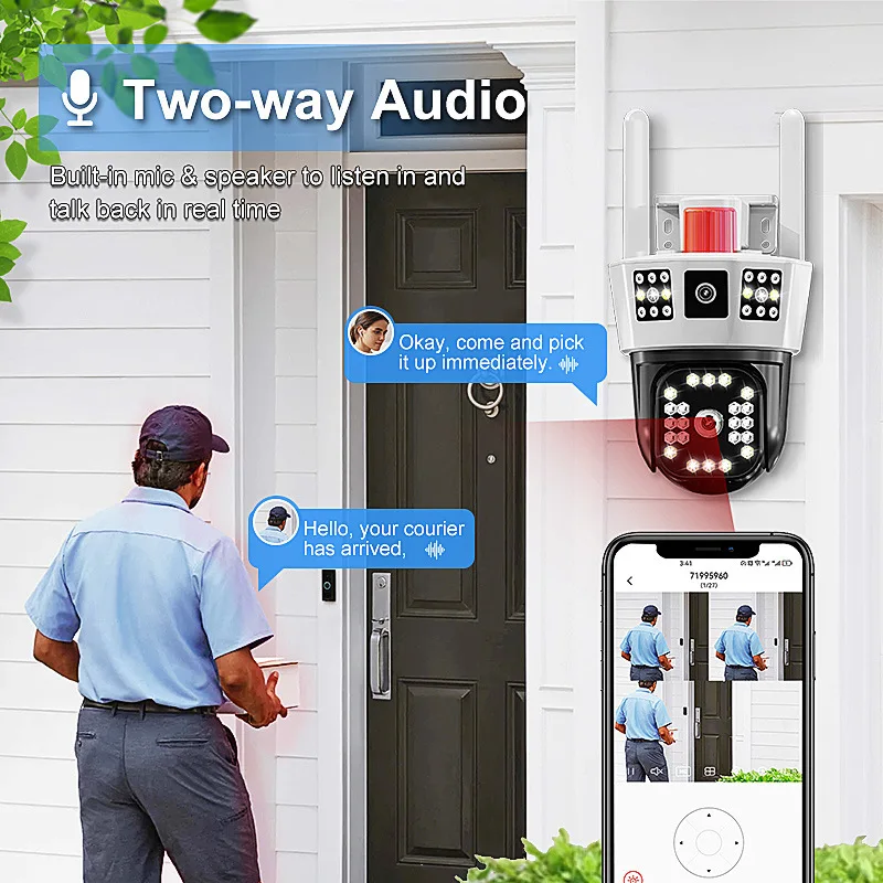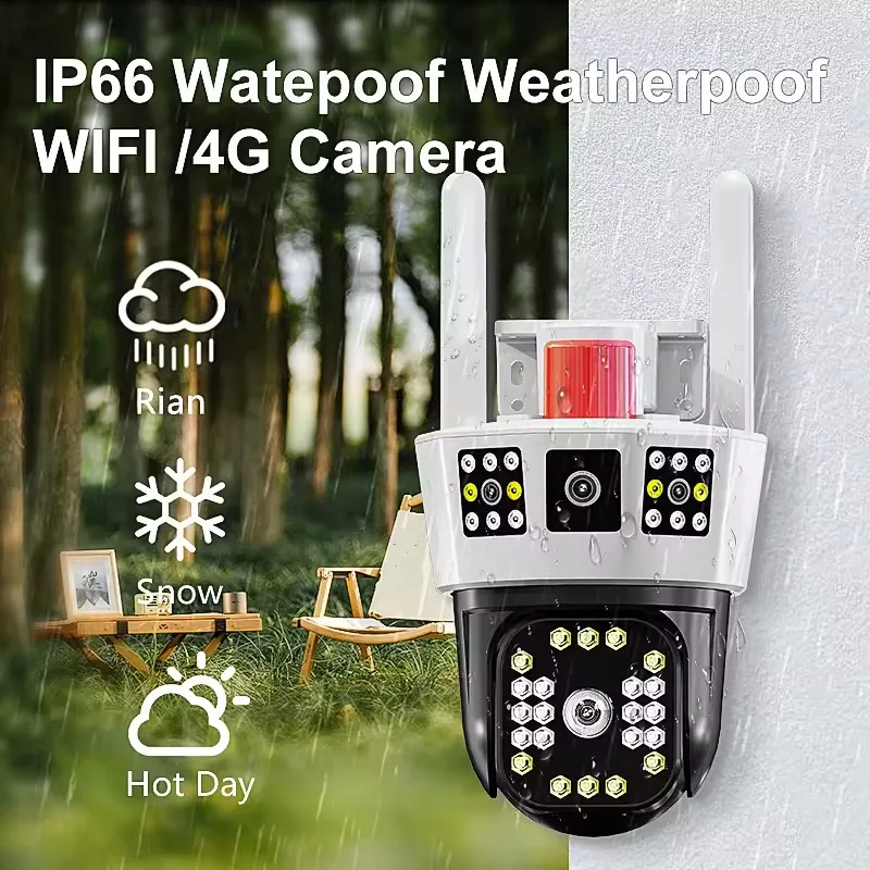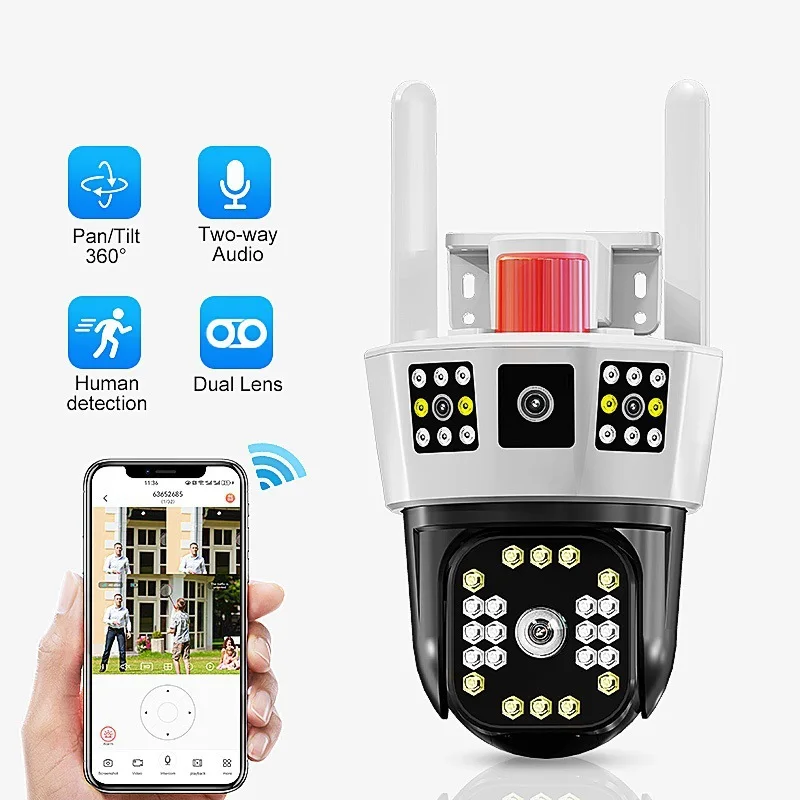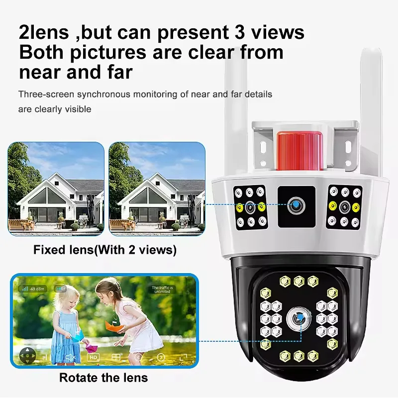 12MP 6K Outdoor WiFi Camera Three Screens 5X Zoom Motion Tracking-360°