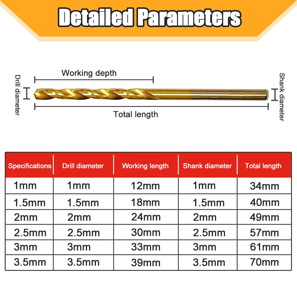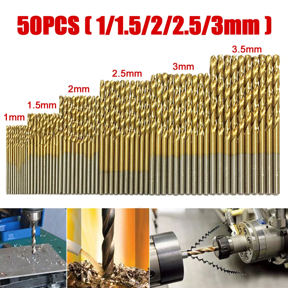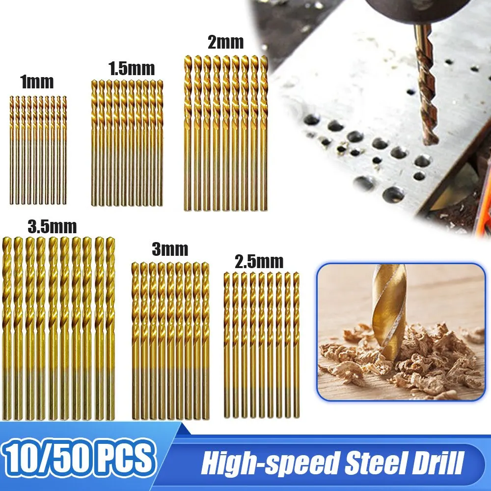 Nuovo 50 Pz Titanio Rivestito Twist Punte per Trapano Alta Velocità Acciaio Set