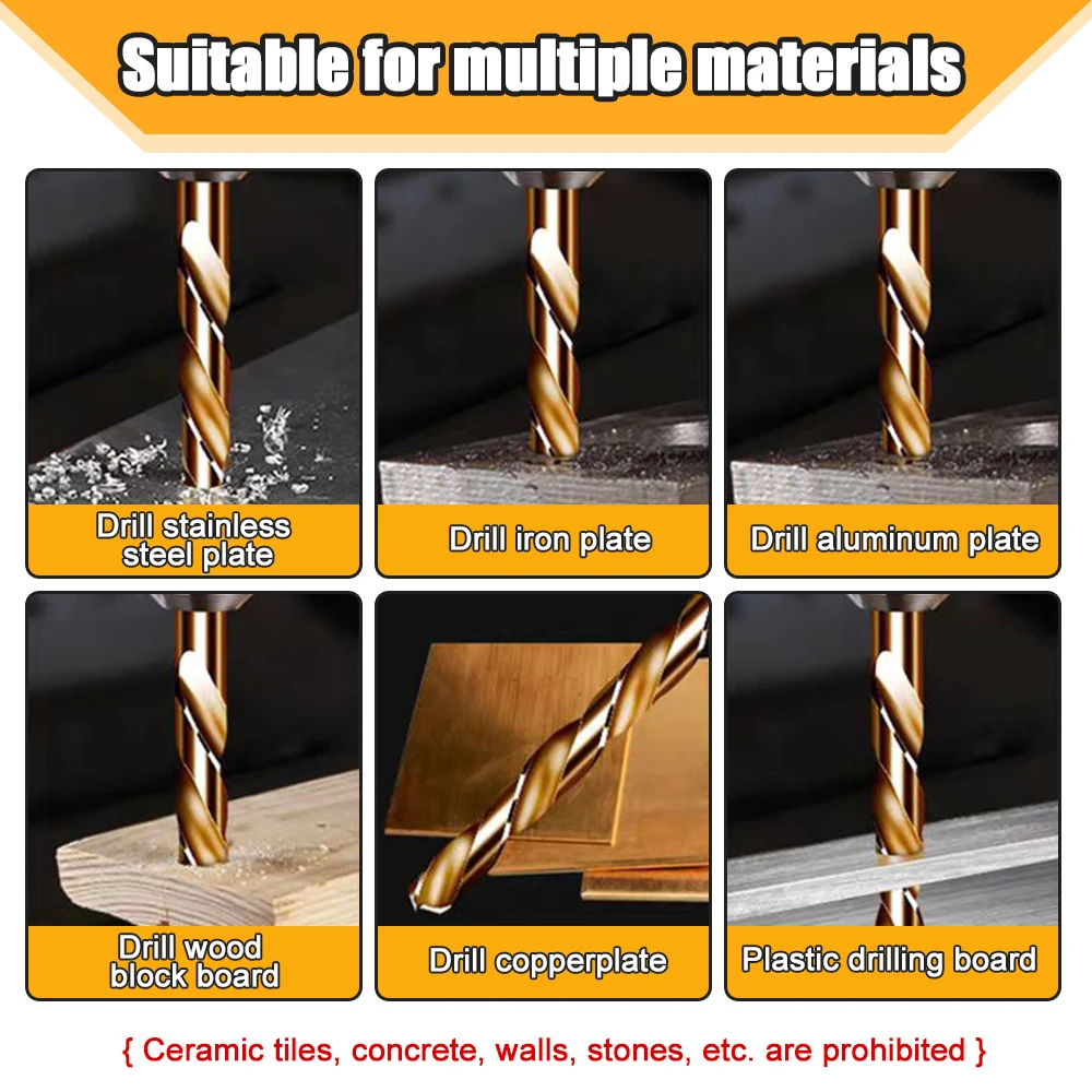 • Rivestimento Ti-Placcato :Il rivestimento Ti-placcato su queste punte da trapano migliora la loro resistenza all'usura, prolungandone la durata e fornendo prestazioni superiori.